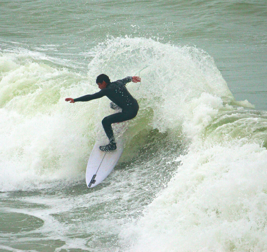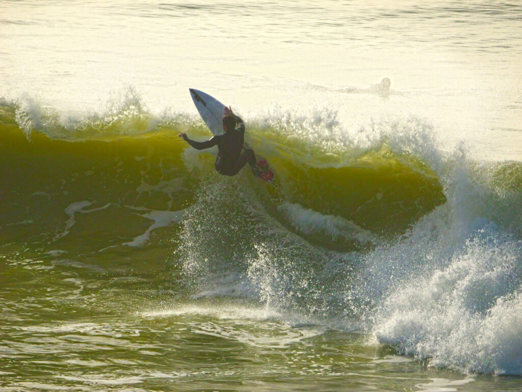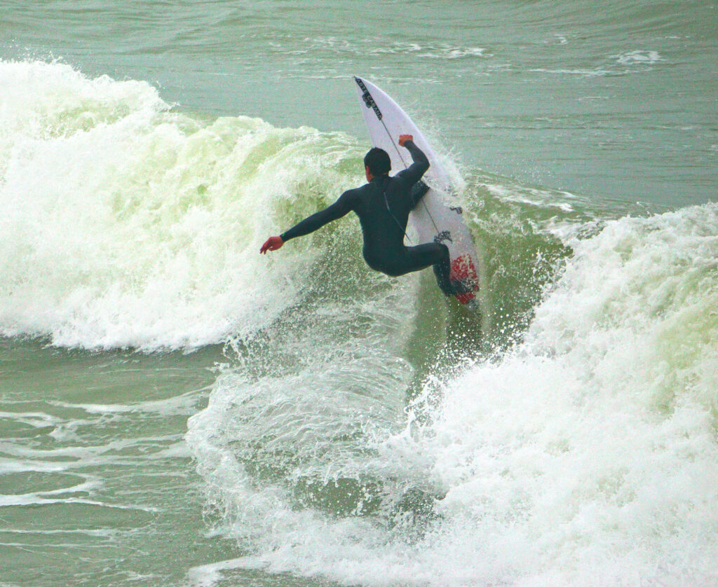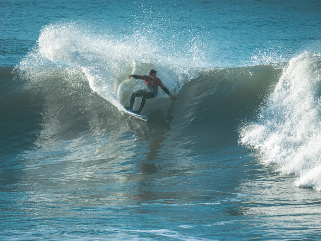 Hoy, en plena madurez deportiva, demuestra una presencia cada vez más sólida dentro del surf gaditano y un estilo muy reconocible en sus maniobras.